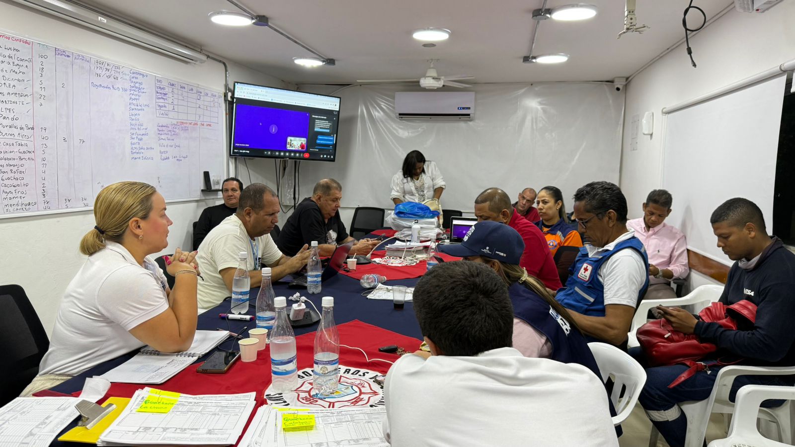 Por orientación del alcalde Carlos Pinedo Cuello, la Alcaldía Distrital de Santa Marta presidió el Puesto de Mando Unificado -PMU- desde la sede del Cuerpo de Bomberos Voluntarios, con el objetivo de consolidar el balance de afectaciones ocasionadas por el frente frío y fortalecer la articulación interinstitucional para la atención de las comunidades impactadas.