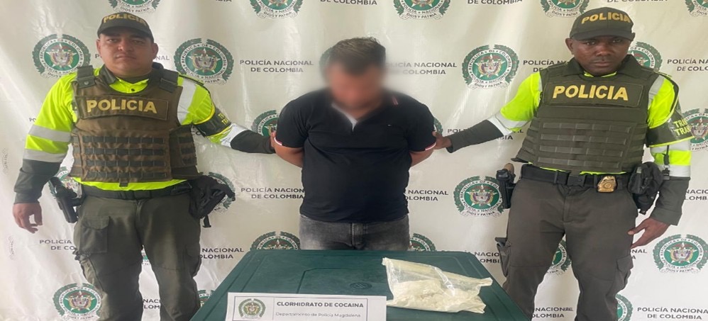 La Policía del Magdalena, mediante labores de control vial, detuvo a un hombre de 38 años que transportaba cerca de 500 gramos de clorhidrato de cocaína,...