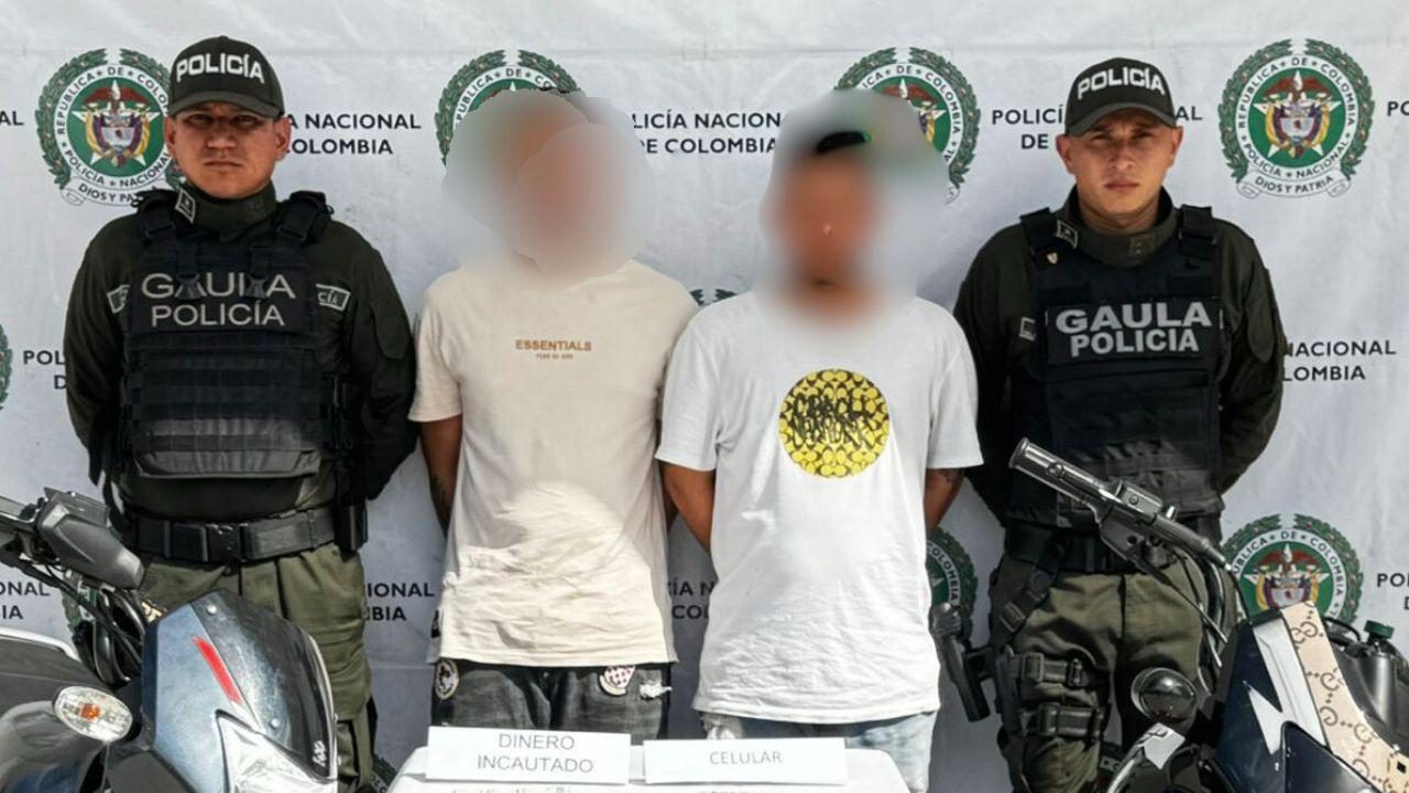 Durante el operativo, realizado por el Gaula, también fueron incautadas dos motocicletas que presuntamente eran utilizadas para movilizarse y ejecutar las exigencias extorsivas. Asimismo, se halló dinero en efectivo y un teléfono celular que habría servido para comunicarse con las víctimas y coordinar el cobro de las cuotas ilegales.