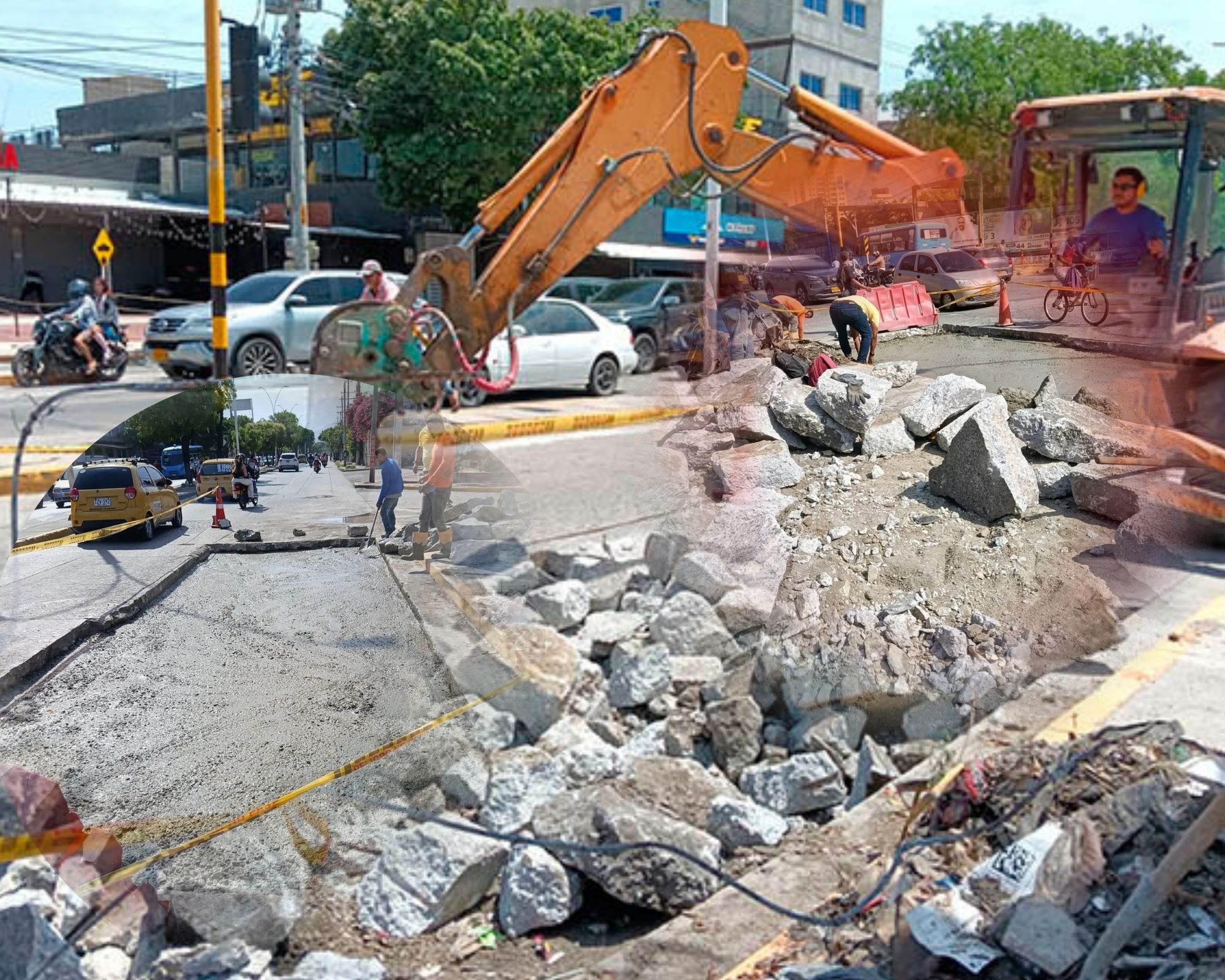 La intervención se ejecuta frente al centro comercial Las Palmas y obligará a mantener restricciones de movilidad mientras el concreto alcanza su resistencia.