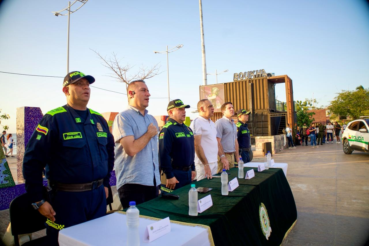 En medio de un acto protocolario que tuvo como escenario el Camellón de la Bahía de Santa Marta, el alcalde Carlos Pinedo Cuello le dio la bienvenida a la ciudad a un grupo de 63 policías procedentes de diferentes regiones del país, que llegaron a reforzar la seguridad en esta capital.