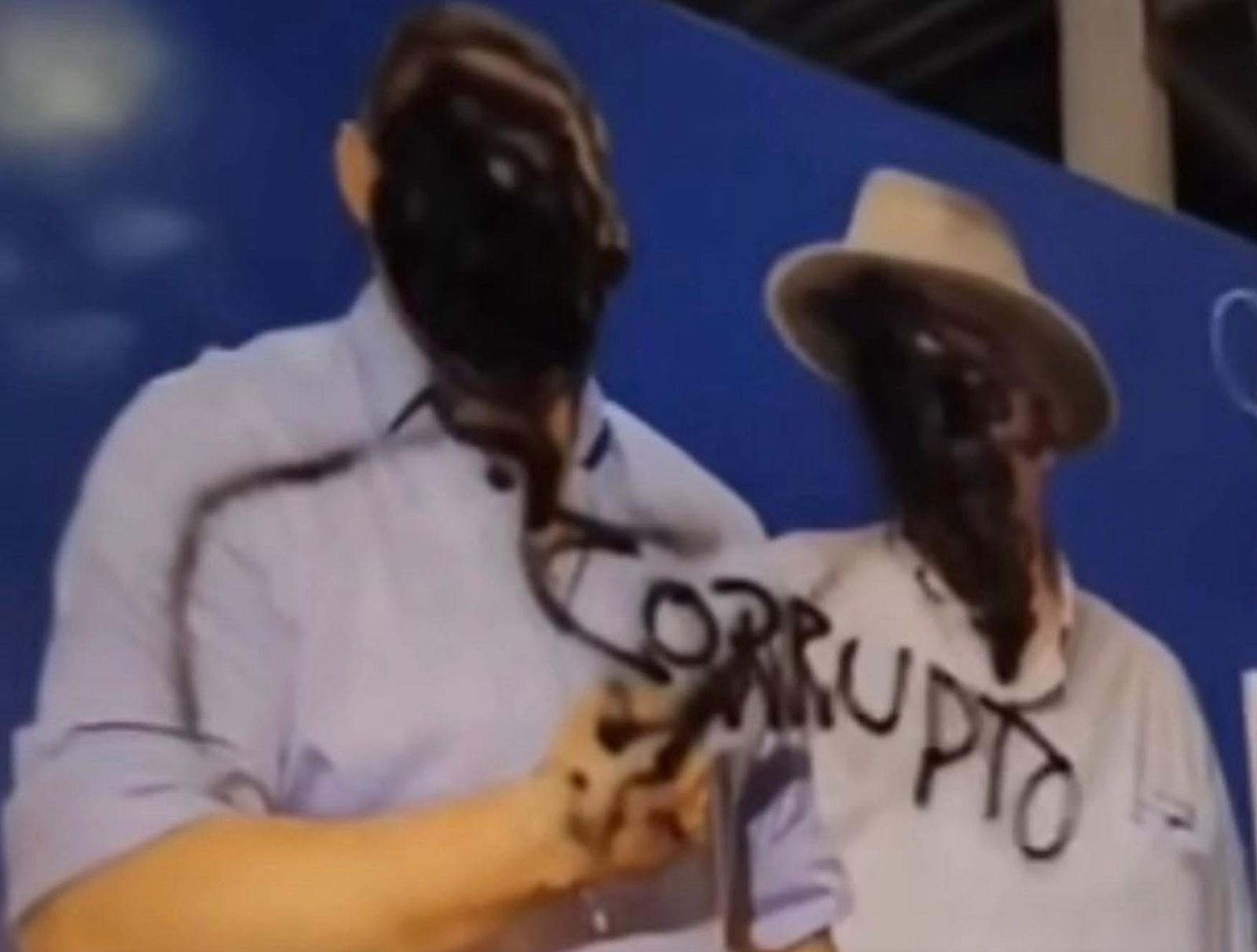 Durante la madrugada, la pieza publicitaria fue vandalizada: los rostros de ambos aparecieron cubiertos con pintura negra y sobre el pendón fue escrita la palabra “corrupto”, lo que llamó de inmediato la atención de residentes y transeúntes.