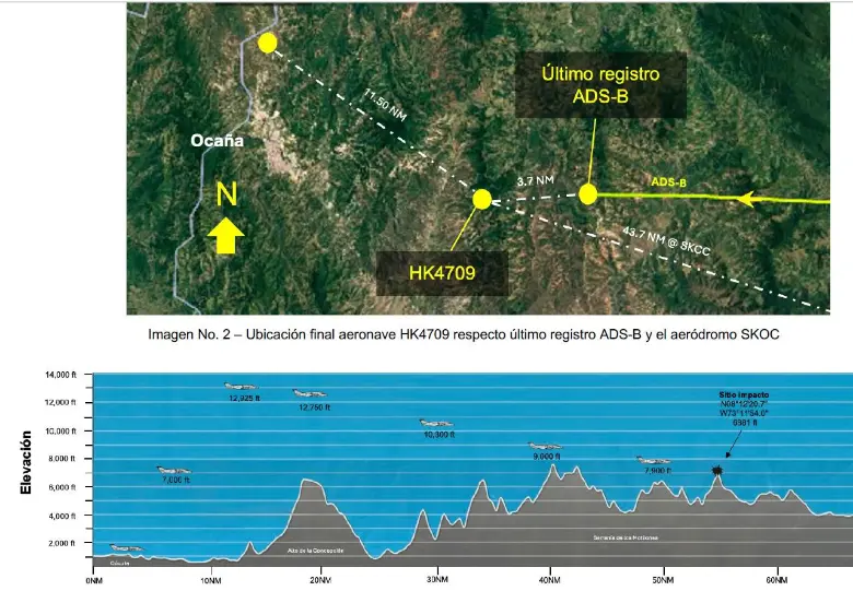 Posteriormente, el avión fue reportado como desaparecido a las 6:20 de la tarde, luego de que no se presentara en el aeropuerto de Ocaña como estaba previsto.