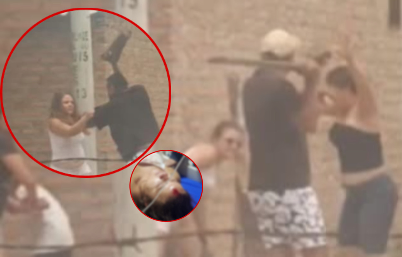 En las imágenes se observa cómo la mujer intenta defenderse, mientras su hermana también interviene, terminando ambas con heridas visibles en el rostro.