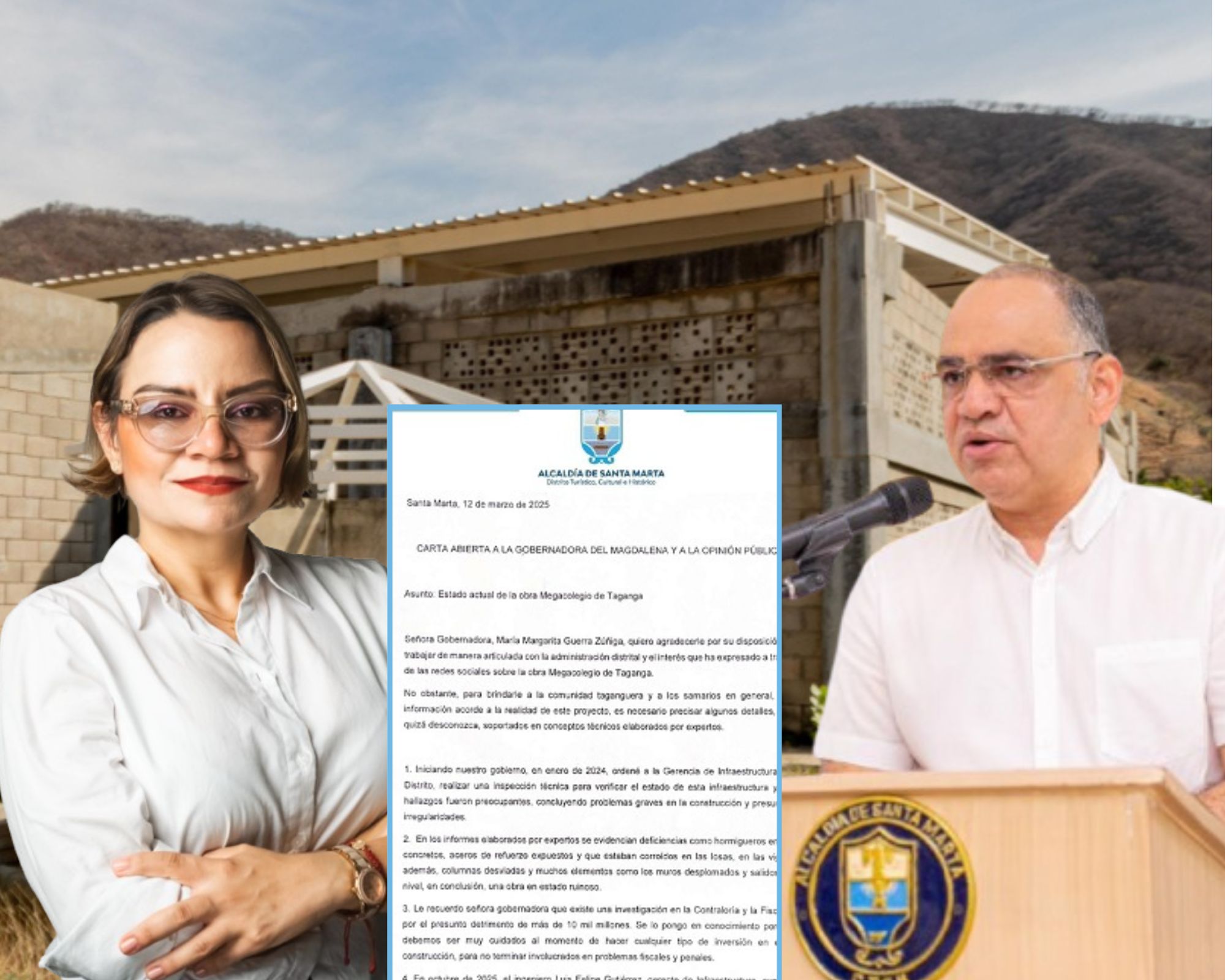 El alcalde de Santa Marta, Carlos Pinedo Cuello, respondió públicamente a la gobernadora del departamento, Margarita Guerra, señalando que la reunión que ella misma solicitó es urgente y necesaria para discutir no solo el futuro del megacolegio de Taganga, sino también otras obras que requieren coordinación entre el Distrito y la Gobernación.