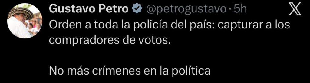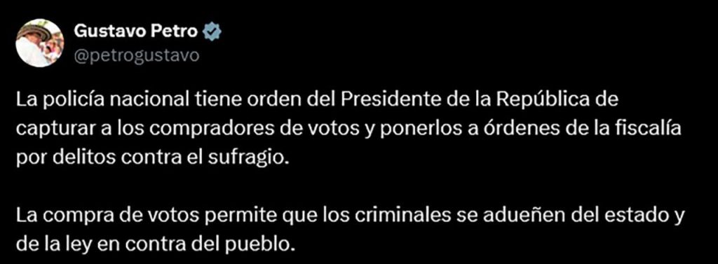 La cosa se puso seria en plena campaña. El presidente Gustavo Petro lanzó una advertencia directa: ordenó a todas las autoridades salir a buscar y capturar a quienes estén metidos en compra de votos.
