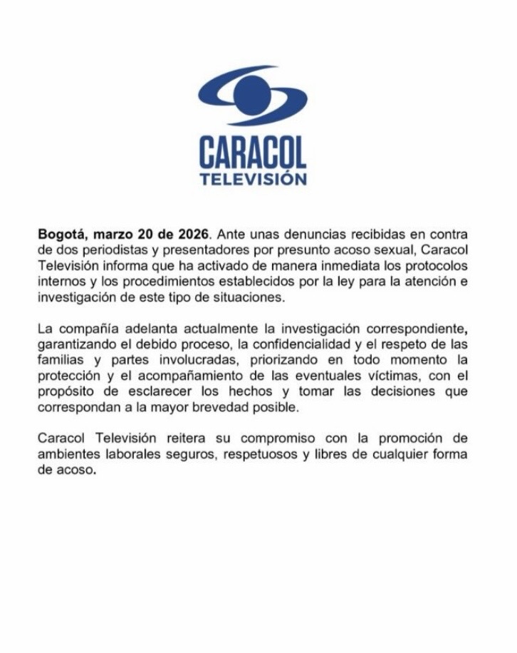 En un comunicado, la empresa aseguró que su prioridad es proteger y acompañar a las posibles víctimas, mientras se respeta el debido proceso y la confidencialidad de todos los implicados. “Reiteramos nuestro compromiso con ambientes laborales seguros, respetuosos y libres de acoso”, señaló el canal.