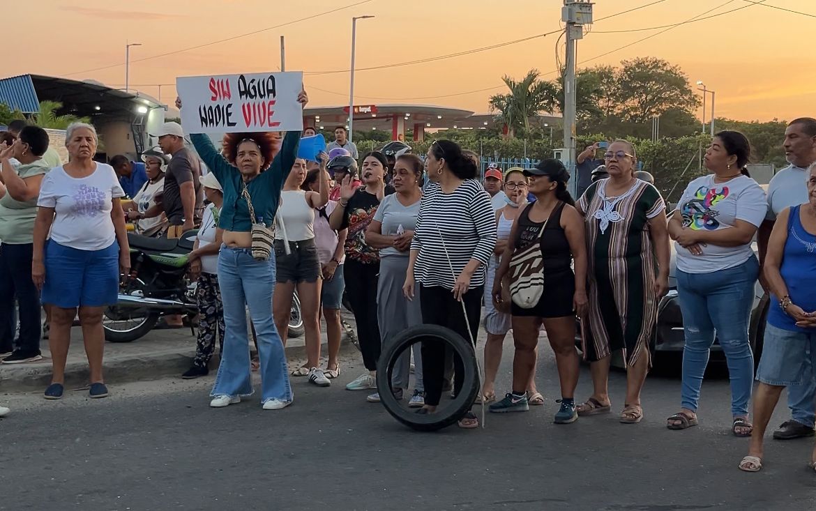 Habitantes del barrio Líbano 2000 realizaron una protesta pacífica en el sector de La Piragua, a un costado de la bomba ubicada en esta zona, ante la falta de servicio de agua potable desde hace más de 15 días en sus viviendas.